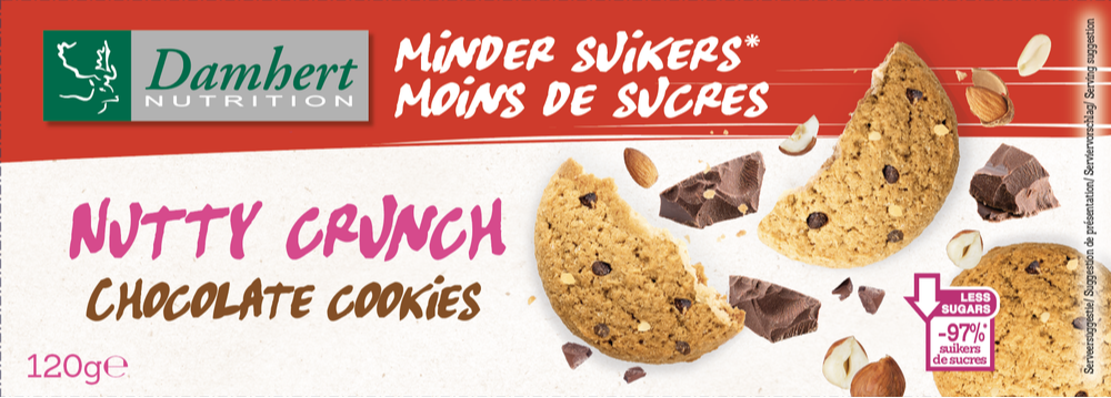 Damhert Nutty Crunch Chocolate Cookies (120gr) zijn heerlijke koekjes met een knapperige textuur en een volle chocoladesmaak. Deze koekjes zijn perfect voor iedereen die op zoek is naar een lekker tussendoortje, maar wel op een verantwoorde manier wil genieten. Deze cookies