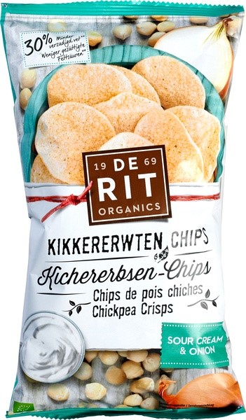 De Rit Kikkererwten Chips Sour cream-onion is een lekker tussendoortje en bovendien nog gezond ook want het bevat minder vet en meer vezels dan aardappelchips.