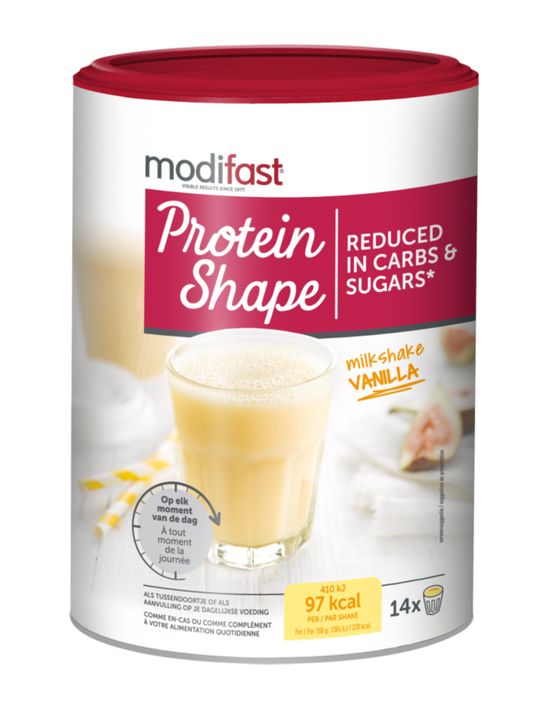 Modifast Protein Shape Milkshake Vanille (420 gram) is een heerlijke milkshake met de smaak van vanille, rijk aan eiwitten en verrijkt met vitaminen en mineralen. Het poeder is perfect voor elk moment van e dag als tussendoortje of als aanvulling op uw dagelijkse voeding.